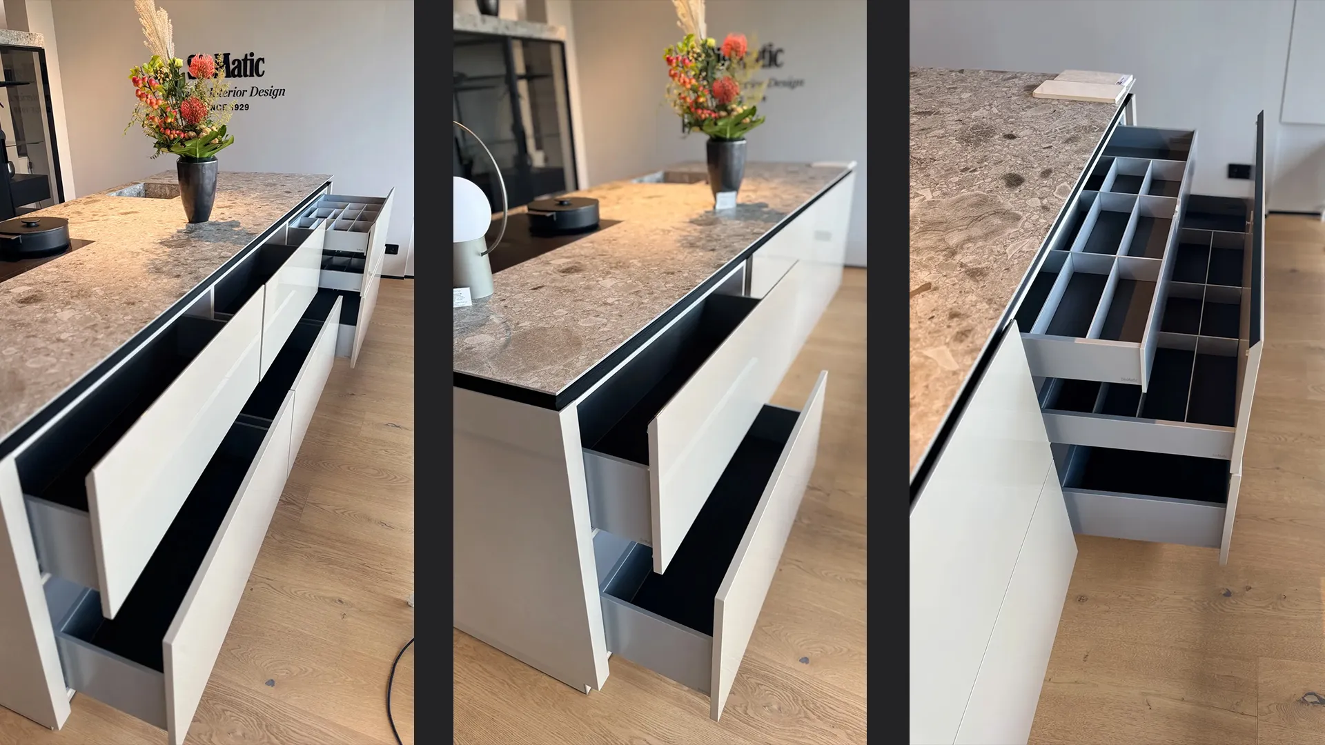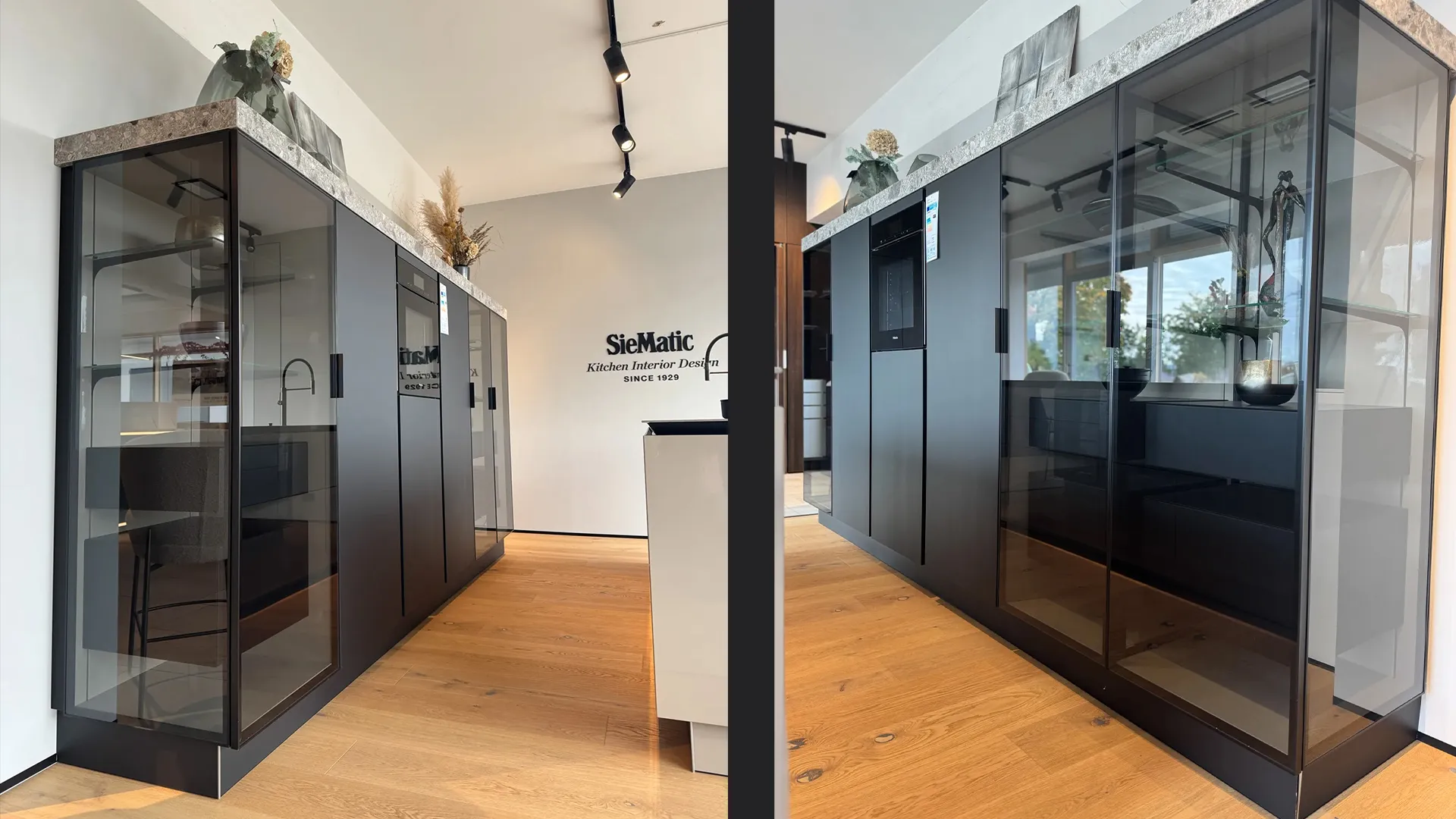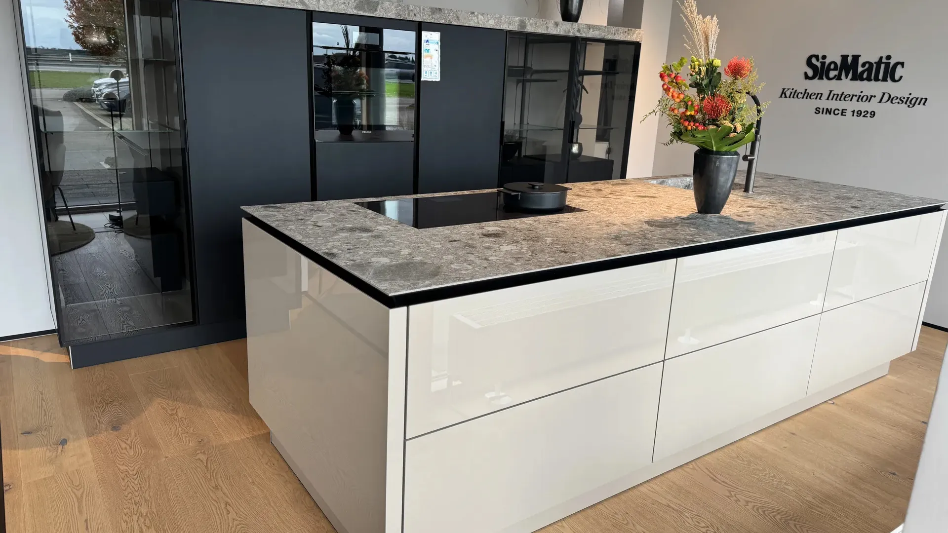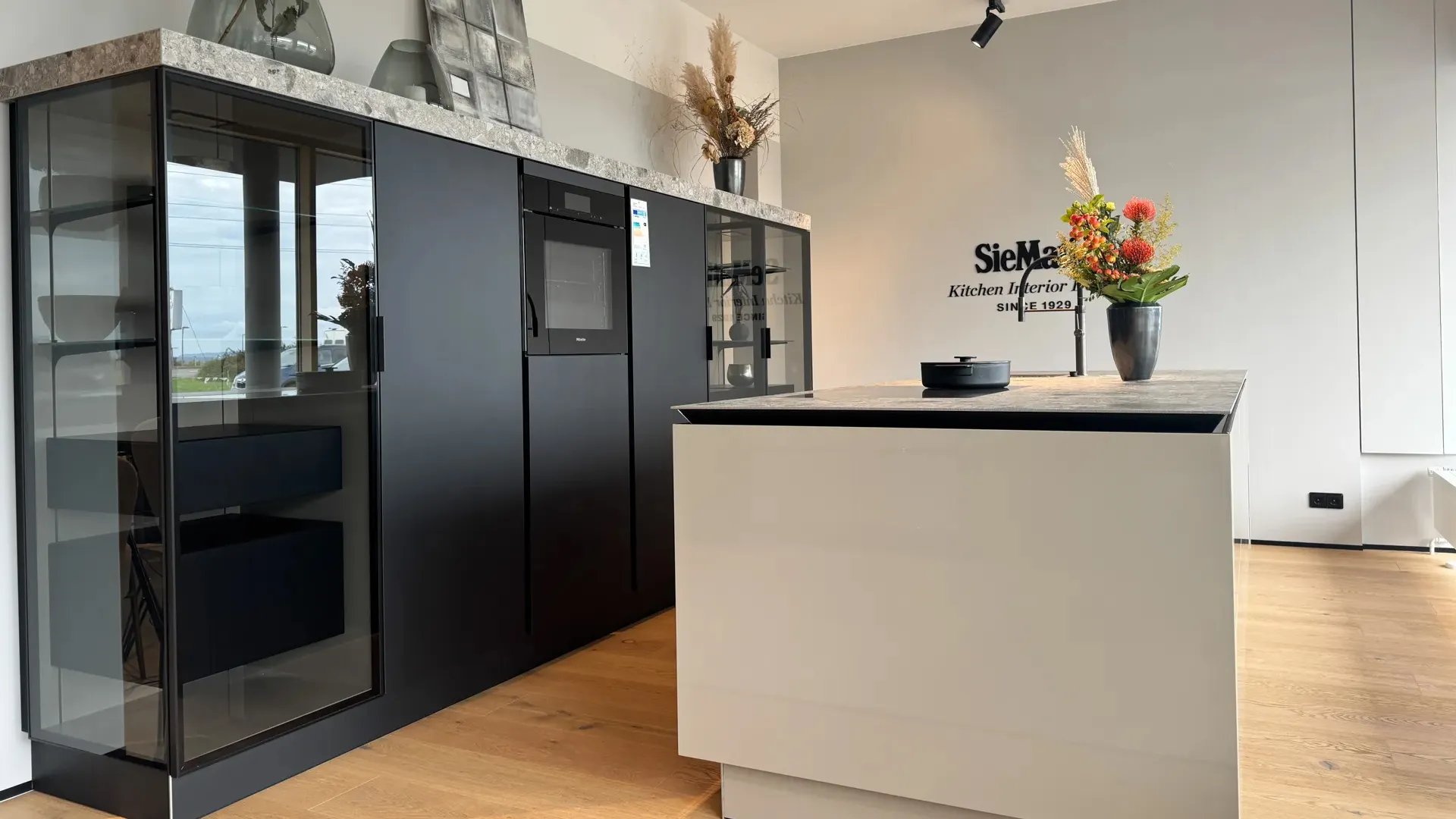 Siematic SLX grifflose Hochglanzfront, achatgrau glänzend und schwarzmatt kombiniert